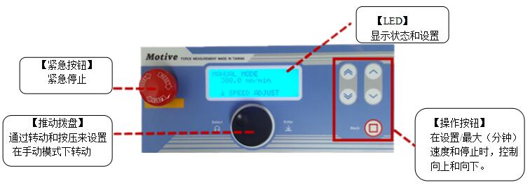 | 有三種測試模式可以滿足需求。 手動模式:移動而按向上/向下按鈕。 慢跑模式:將刻度盤(約:每一圈0.05毫米) 循環模式:旅行行程限制旋鈕之間循環 |