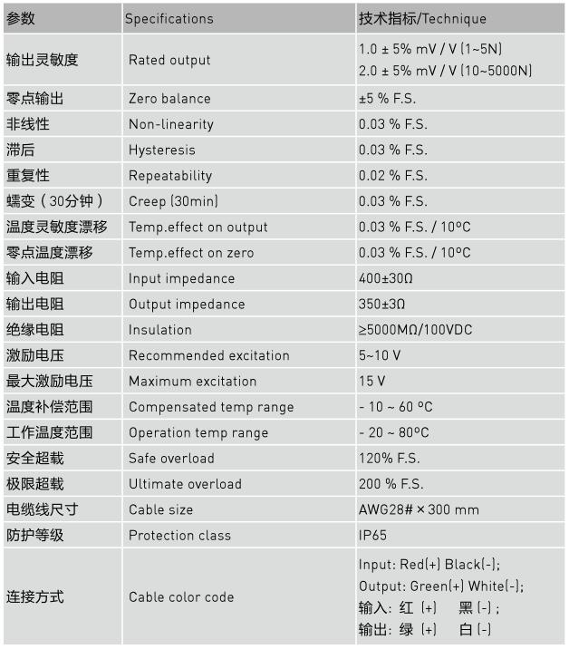 量程:1,2.5,5,10,25,50,100,200,250,500,1000N 鋁合金Aluminum alloy 2000,2500,5000N 合金鋼 Alloy steel